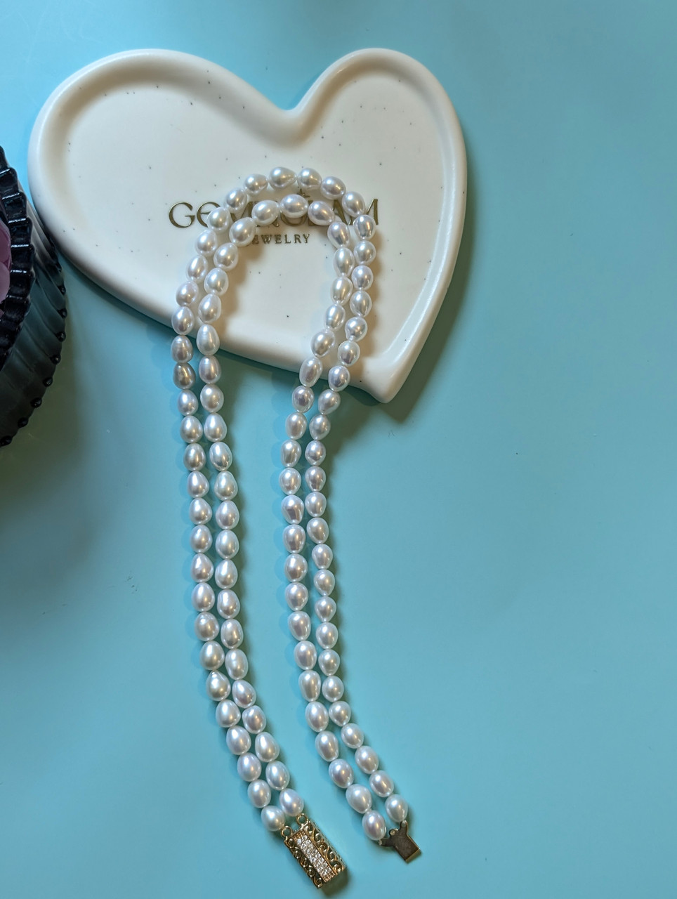 Water-drop freshwater pearls with exceptional luster and clean surfaces, finished with a decorative pavé box clasp designed to be seen. Casual, elegant, and effortlessly wearable.