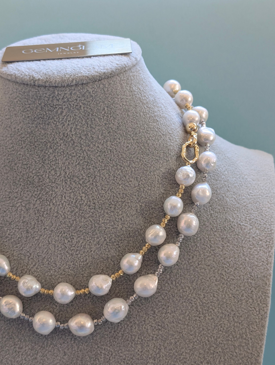 שרשרת זו, העשויה מפניני מים מתוקים בארוקיות בגודל 10-12 מ"מ שנבחרו בקפידה, משלבת נינוחות נינוחה עם נוכחות טבעית. כל פנינה נבחרת בזכות הברק הבהיר והמשטח הנקי שלה, וחוגגת את היופי האורגני של פניני הבארוק.
