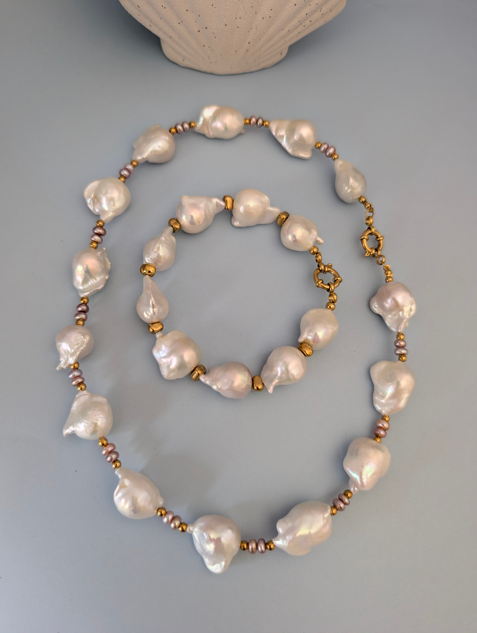 השלימו את המראה עם צמיד תואם מסדרת פניני הבארוק שלנו.